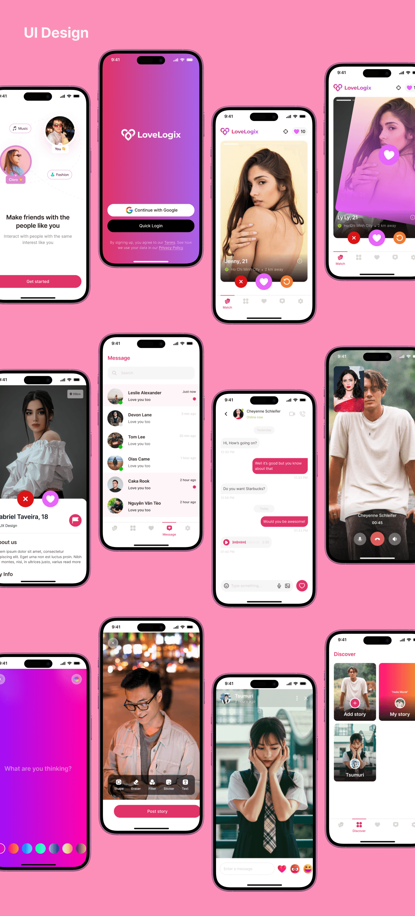 The goal was to create a modern, elegant, and user-friendly dating app that would not only attract potential users but also provide a seamless online experience, enabling users to easily connect, find suitable matches, and set up dates conveniently.