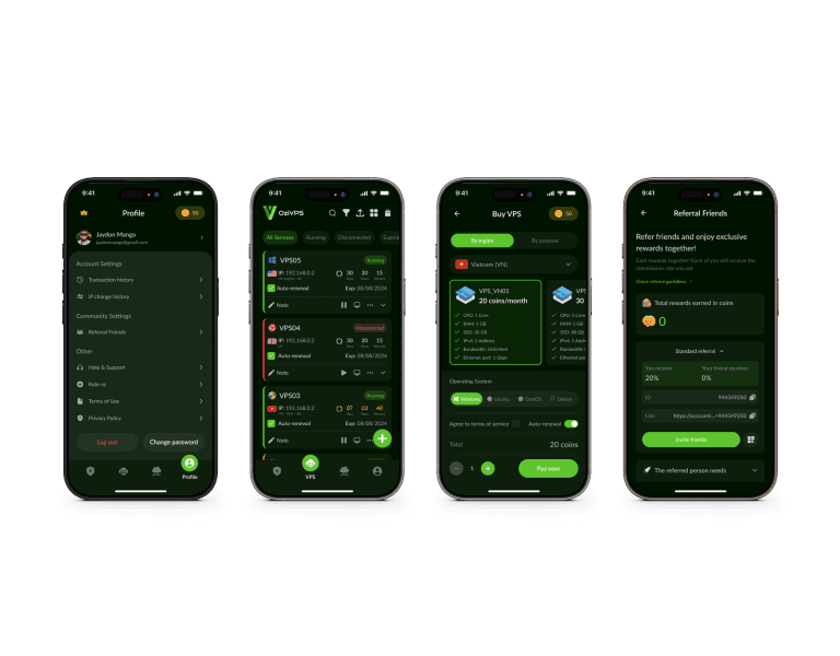 The goal was to create a modern, sophisticated, and user-friendly mobile app for cloud services, VPS, proxies, and VPNs. The app not only aims to attract new users but also provides a seamless experience, enabling them to easily manage their servers, monitor performance, configure settings, and enhance network security effortlessly.
